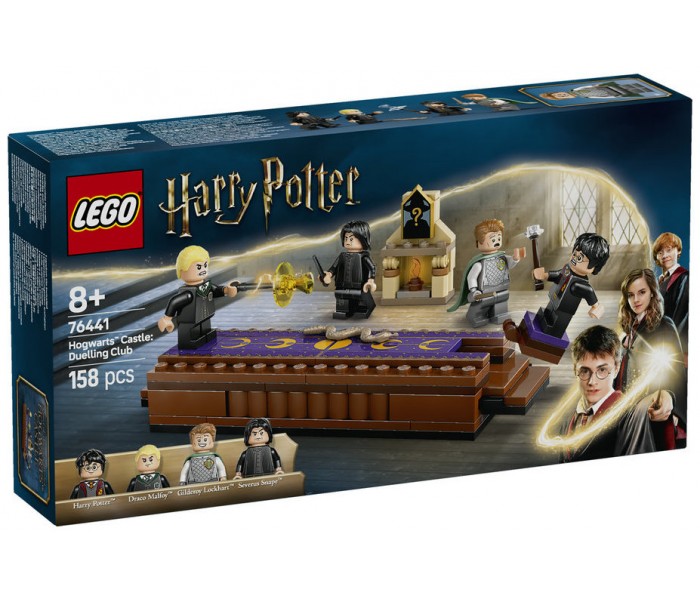 Recrea una fascinante escena de Harry Potter y la cámara secreta? con el juguete LEGO® Harry Potter? Castillo de Hogwarts?: Club de Duelo (76441) para mayores de 8 años. Incluye una plataforma donde se baten 2 minifiguras (empuja los escalones para derribar a la minifigura del extremo opuesto), así como 1 cuadro de Hogwarts (de 14 en total) para exponerlo sobre la chimenea. El set cuenta con 4 populares personajes en formato de minifigura LEGO: Harry Potter y Draco Malfoy? (con varitas y elementos que representan hechizos), y Gilderoy Lockhart? y Severus Snape?.