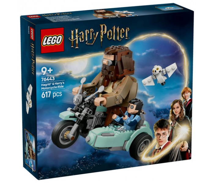 Sujétate fuerte y disfruta del set Viaje en Moto de Hagrid? y Harry (76443), un encantador juguete para niñas, niños y fans del Mundo Mágico. Ideal como regalo de cumpleaños para mayores de 9 años, este set LEGO® Harry Potter? para jugar y exponerincluye figuras de juguete articuladas de Harry Potter, Hedwig? y Rubeus Hagrid integradas en una moto y su sidecar. Las ruedas del vehículo LEGO giran para que los niños puedan interpretar inolvidables escenas de Harry Potter y las reliquias de la muerte? o el llamativo modelo puede simplemente usarse para decorar la habitación al estilo Harry Potter.