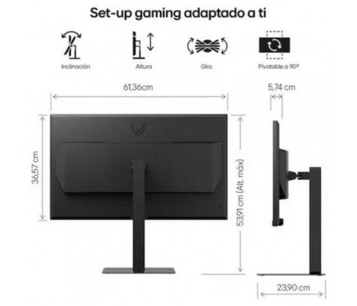- Diseño sin bordes prácticamente en los 3 lados, soporte en forma de L que optimiza el espacio y regulable en altura para mayor comodidad.