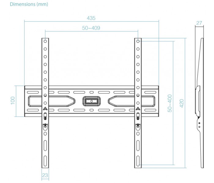 - Compatible con VESA: 50x50, 75x75, 100x100, 100x150, 150x100, 100x200, 200x100, 150x150, 200x200, 200x300x, 300x200, 200x400x, 400x200, 300x300, 300x400, 400x300, 400x400