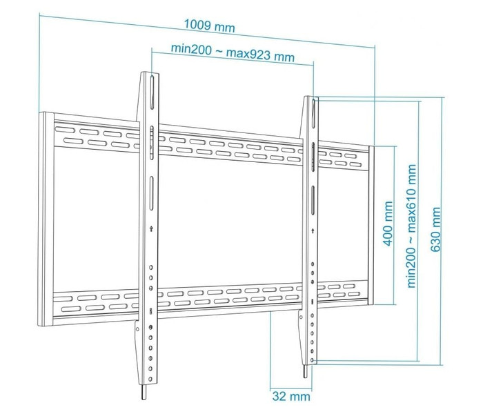Gembird WM-S80F-01. Capacidad máxima de peso: 50 kg, Tamaño mínimo de pantalla: 94 cm (37"), Tamaño máximo de pantalla: 2,03 m (80"), Compatibilidad con interfaz de montaje (min): 200 x 100 mm, Compatibilidad con interfaz de montaje (max): 600 x 400 mm. Distancia a la pared (max): 1,7 cm. Color del ..
