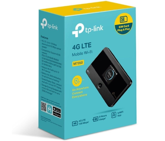 El M7350 de TP-LINK se encuentra en el primer plano de la compartición inalámbrica de 4G. Tan solo es necesario insertar una tarjeta SIM 4G en el dispositivo para establecer instantáneamente la selección de un hotspot Wi-Fi de banda dual. Con velocidades de hasta 150 Mbps de descarga y hasta 50 Mbps de subida, el M7350 está capacitado para proporcionar la compartición inalámbrica de 4G para hasta 15 usuarios simultáneamente. Su diseño de bolsillo y potente batería interna de 2550mAh hacen que sea el compañero ideal de viaje, permitiendo a los usuarios trabajar o jugar durante 10 horas. Con su innovadora pantalla TFT, los usuarios dispondrán de una visión mucho más intuitiva del estado operativo del dispositivo, de la intensidad de señal, tipo de red (4G/3G/2G), estado Wi-Fi, mensajes, internet, estadísticas de tráfico y evolución de la batería.- Soporta 4G LTE con hasta 150 Mbps de velocidad de descarga y 50 Mbps de velocidad de subida