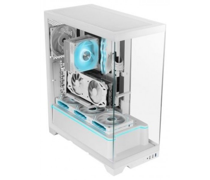 La MC-PRISMA ofrece una experiencia única al integrar tres paneles de cristal templado continuo sin marcos. Este diseño envolvente permite contemplar el interior desde múltiples ángulos, realzando cada componente con una nitidez y elegancia incomparables. Perfecta para configuraciones ARGB, convierte tu equipo en un espectáculo visual que refleja la personalidad y creatividad de cada usuario.