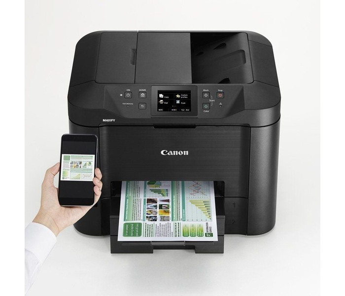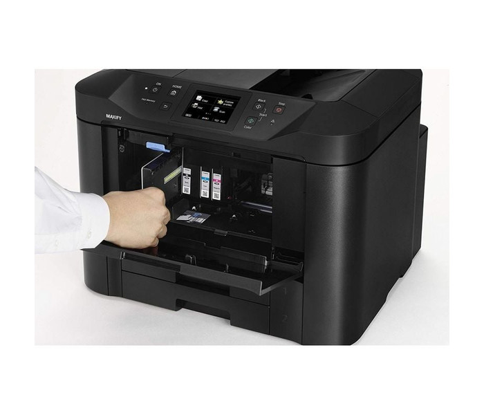 Una gran pantalla táctil en color de 8,8 cm permite acceder fácilmente a todas las funciones de la MAXIFY serie MB5450. Además de su gran capacidad de 500 hojas, un alimentador automático de documentos de 50 hojas e impresión a doble cara, la MAXIFY serie MB5450 también es compatible con una amplia variedad de tamaños y tipos de papel (desde papel normal A4 hasta etiquetas, sobres, papel fotográfico e incluso copia de carné de identidad a doble cara), lo que acaba con el estrés de las tareas de impresión habituales de la oficina.