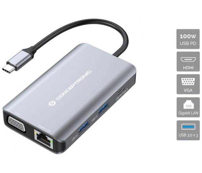 Donn21g estación de acoplamiento 7 en 1 usb 3.2 gen 1 - hdmi - vga - lan gbe - usb - a 3.0 x 3 - usb pd de 100 w