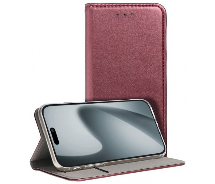 Apertura lateral tipo libro. Incorpora una carcasa específica del modelo de smartphone, para incrustarlo y dejarlo perfectamente encajado.