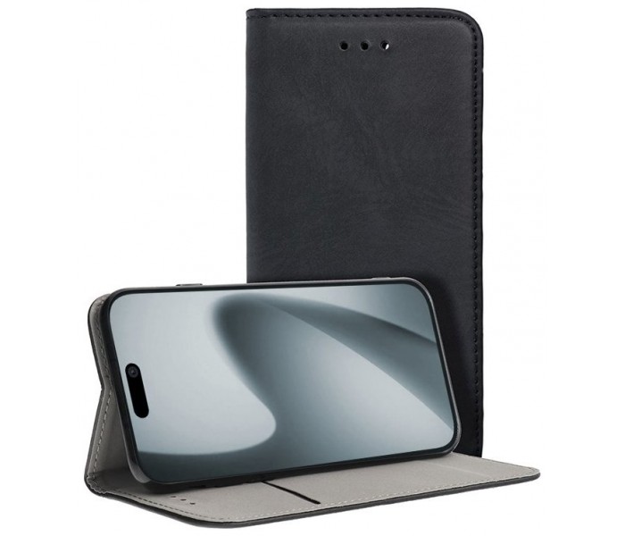 Apertura lateral tipo libro. Incorpora una carcasa específica del modelo de smartphone, para incrustarlo y dejarlo perfectamente encajado.