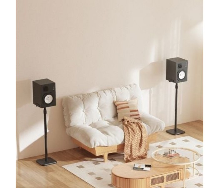 Soporte versátil de suelo para altavoces. Fabricado con acero de alta resistencia y pintado con pintura electrostática para un acabado perfecto. Destacamos su fácil instalación y ajuste. Ideal para el salón, estudios o home cinema, este soporte mantiene tus altavoces a la altura óptima, asegurando un sonido limpio, claro y preciso.