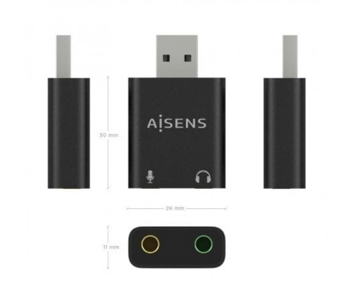 Tarjeta de Sonido Aisens A106-0769/ USB Macho - 2xJack 3.5 Hembra Descripción: Conversor USB-A a AUDIO, con conector USB-A en un extremo y 2xJACK 3.5 3 pines hembra en el otro. Permite transmitir señales de USB a audio (auriculares y micrófono). No requiere software ni controladores, una solució..