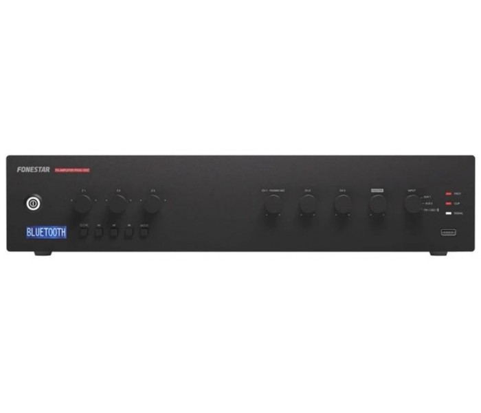 El PROX-120Z es un amplificador de megafonía profesional diseñado para sistemas de sonido distribuidos en edificios, centros comerciales, instalaciones educativas o cualquier entorno donde se requiera controlar varias zonas de audio con fiabilidad. Este equipo destaca por su potencia de 120 W RMS, reproductor múltiple integrado (Bluetooth, USB y radio FM), y una gestión avanzada de prioridades y zonas, todo en un formato compacto compatible con rack de 19".