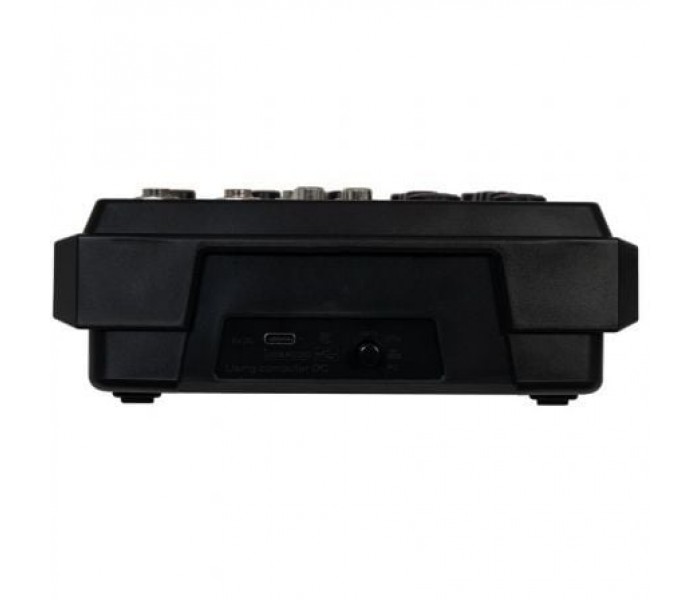 Tiene un tamaño muy reducido y portátil, perfecto para artistas ambulantes, estudios musicales domésticos, pequeños eventos o fiestas, etc. Además, solamente necesita alimentación de 5 V CC, 2"1 A, que puede ser proporcionada por el adaptador, por el puerto USB de un PC o portátil o a través de una power bank, lo que aumenta enormemente la versatilidad y posibilidades de uso de este completo mezclador.