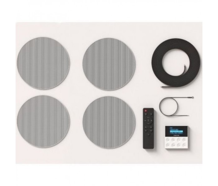 Kit de sonido (todo en uno) que incluye 4 altavoces de techo y amplificador de pared.