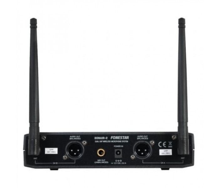 formado por un receptor doble y dos transmisores de micrófono inalámbrico de mano con cápsula dinámica unidirecciónal que maximiza la captación directa de la voz y rechazo de ruidos y sonidos