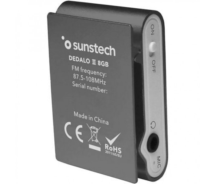Reproductor MP3 Sunstech Dedalo III/ 8GB/ Radio FM/ GrisUn completo MP3 con pinza de sujeción para que disfrutes de la música como a ti te gusta. Reproductor MP3 Pantalla de 1,1" - 2,79 cm. Radio digital FM con 20 presintonías. Audio: MP3 y WMA. ID3 tag, lyrics display y 6 modos de..