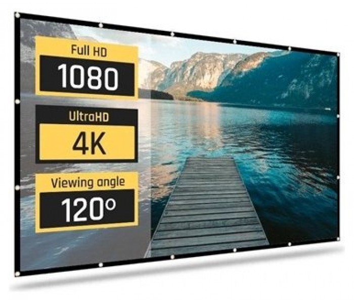 | Características | - Área visible de 120" (265 x 149 cm) - Formato: panorámico 16:9 - 16 ollaos - Factor de ganancia: 1,1 - Ángulo de visión: 120º - Ideal para proyectar vídeo y fotografías - Bordes negros perimetrales de 3 cm - Apta para interiores - Tela elástica de poliéster resistente a las arrugas, plegable y lavable - Ideal para cualquier tipo de proyector, SVGA, XGA, 3D, HD, Full HD y 4K - Temperatura de trabajo: -20ºC ~ +60ºC - Medida plegada en bolsa: 36 x 29 x 5 cm - Peso total: 900 g - Incluye 4 cuerdas de 1 metro de longitud y set de 19 colgadores |
