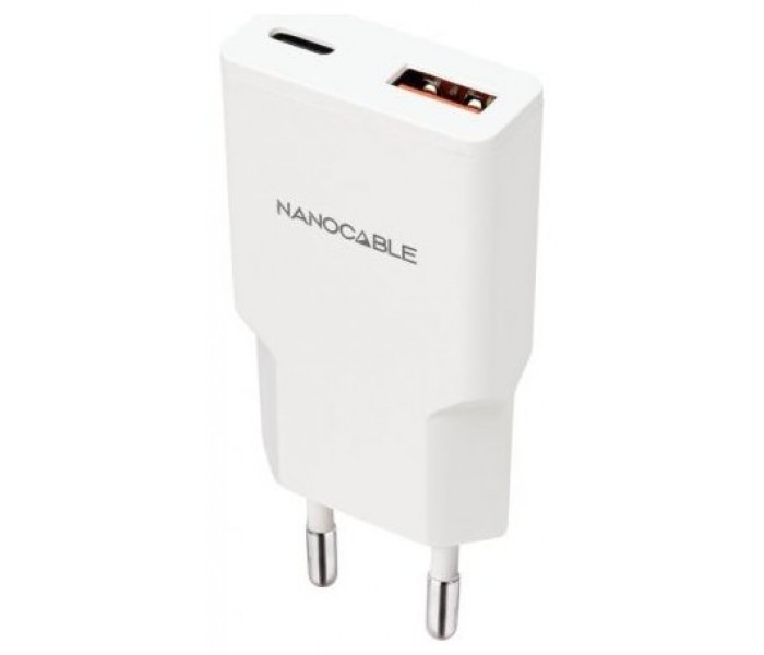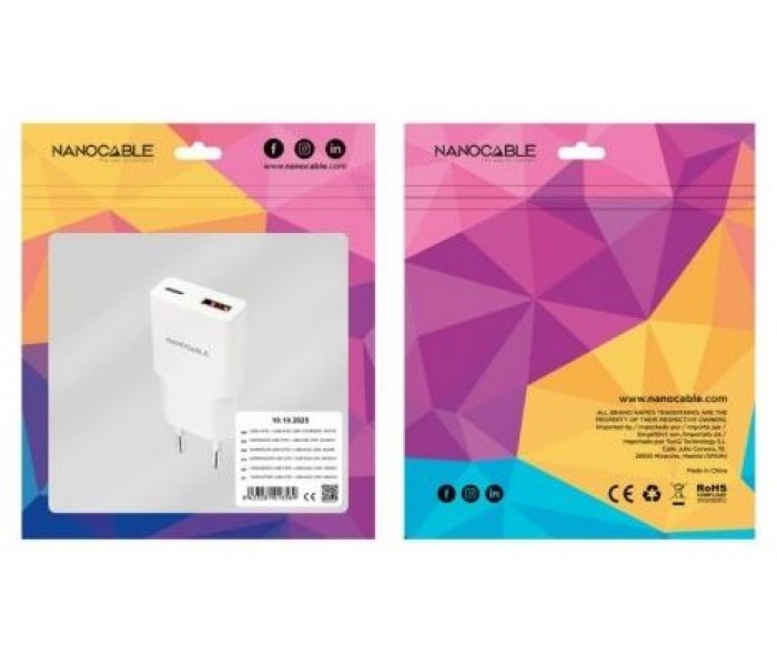 Nanocable Cargador USB-C/PD + USB-A/QC 25W Blanco