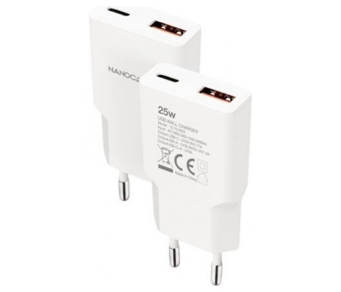 Cargador de 25W con salida USB-C PD + USB-A QC