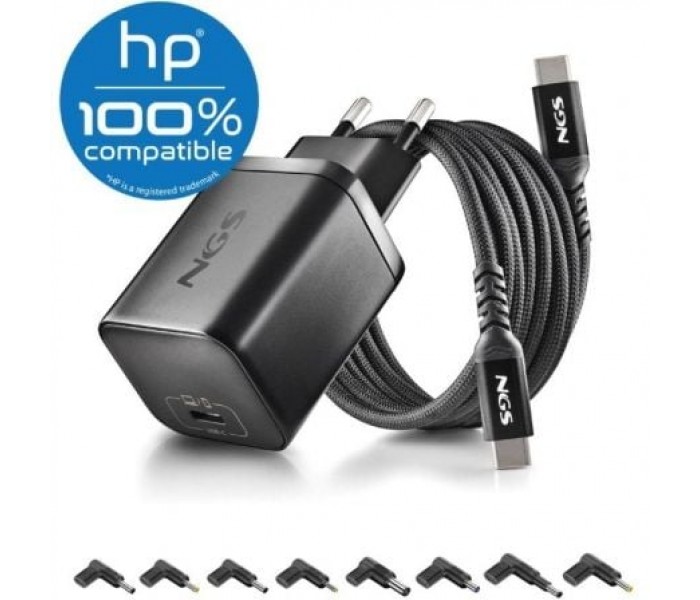PACK CARGADOR GAN USBC DE 65W + CABLE 1,5M USBC + 8 CLAVIJAS PARA PORTÁTIL MARCA HP