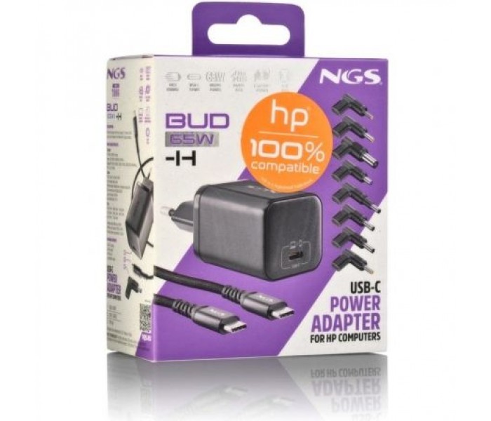 - Disfruta de la máxima potencia de carga con NGS BUD 65W-H, un cargador diseñado para portátiles y otros dispositivos de alto consumo que combina tecnología avanzada, versatilidad y seguridad en un formato ultracompacto.