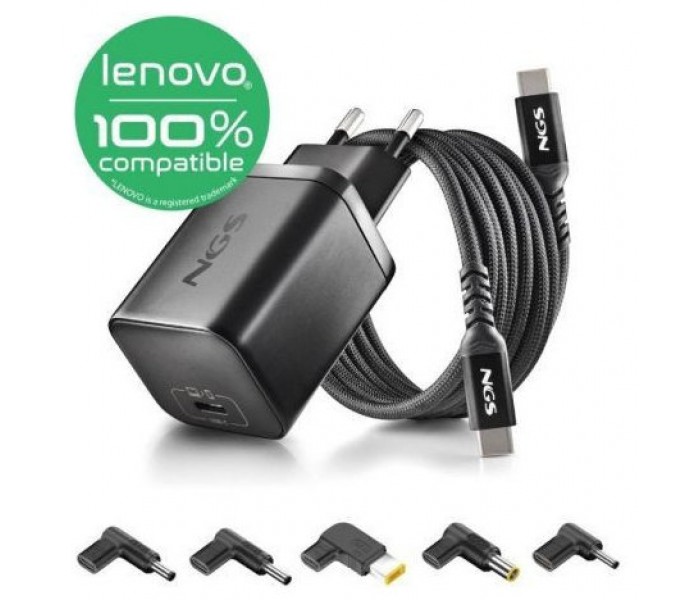 PACK CARGADOR GAN USBC DE 65W + CABLE 1,5M USBC + 5 CLAVIJAS PARA PORTÁTIL MARCA LENOVO