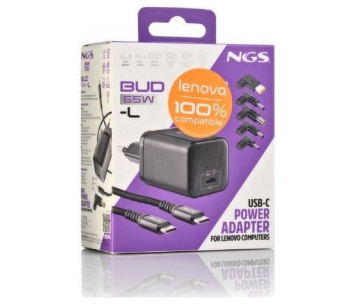 - NGS BUD 65W-L te ofrece una carga rápida, estable y segura, protegiendo tus equipos y garantizando el máximo rendimiento en cualquier lugar.