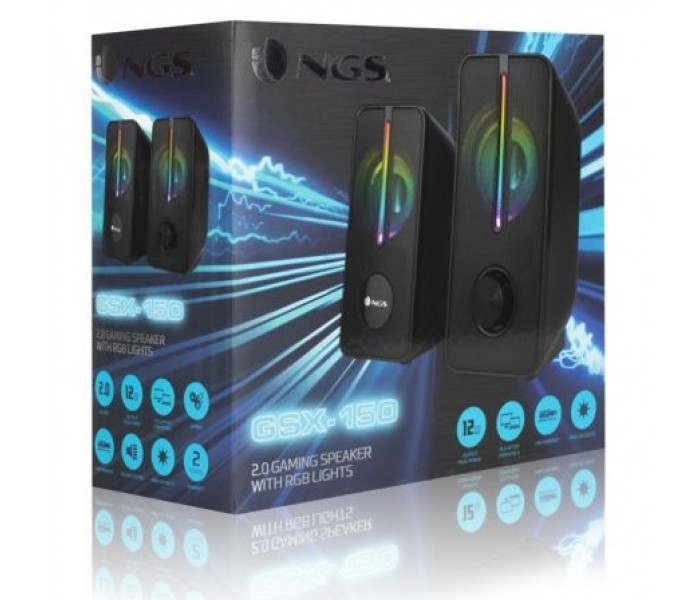 NGS GSX-150. Uso recomendado: Universal. Canales de salida de audio: 2.0 canales, Número de dispositivos: 2. TecnologÃa de conectividad: Inalámbrico. Potencia estimada RMS: 12 W, Rango de frecuencia: 300 - 20000 Hz. Color del producto: Negro
