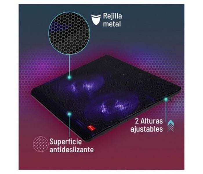 Soporte Refrigerante Mars Gaming MNBC23 para Portátiles hasta 16"/ Iluminación LEDBASE DE REFRIGERACIÓN Y STAND MNBC23Mantén tu portátil fresco y protegido con la base de refrigeración MNBC23. Diseñada con una estructura de acero resistente, rejilla de aluminio y carcasa de ABS, con función stand 6 ..