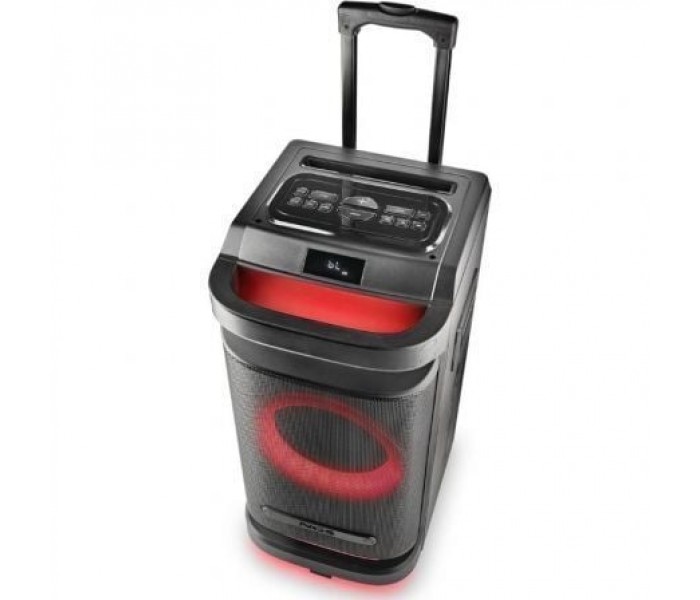 Altavoz inalámbrico compatible con tecnología Bluetooth 5.3 para disfrutar de la música tanto en el interior como en el exterior.. Tamaño compacto y portátil (incluye ruedas y trolley), proporciona sonido de alta calidad gracias a su gran potencia de salida, 180W RMS.. Diseño robusto con materiales muy resistentes (caja de madera).. 900W de potencia de pico, 1x10" woofer. . Luces LED RGB para lograr un ambiente de fiesta. . Amplifica el sonido, permite emparejar dos dispositivos de forma simultánea y aumentar la potencia de sonido gracias a su Tecnología True Wireless.. Compatible con la Tecnología Bluetooth: Conecta tu dispositivo vía Bluetooth y reproduce tu música con la mejor calidad de sonido.. Dispone de puerto de entrada USB para conectarle una memoria de hasta 32GB.. Incluye entrada AUX In para Jack 3,5mm. Doble entrada de micrófono para convertir tus fiestas en un auténtico karaoke.. Batería recargable de Litio de 16V/3600mAh que puede reproducir música hasta 6 horas (al 70% de volumen).. Controla tu música desde el altavoz con los sencillos botones integrados o desde el mando a distancia.. El alcance del móvil para la reproducción de música es de hasta 10m.. Función Xdrive para aumentar el sonido de los bajos a un nuevo y asombroso nivel.