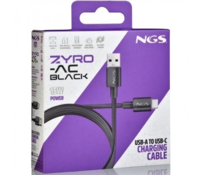 Cable de carga rápida USB-A a USB-C. Transmisión de datos: 480 bps USB 2.0. 1 metro. 15W