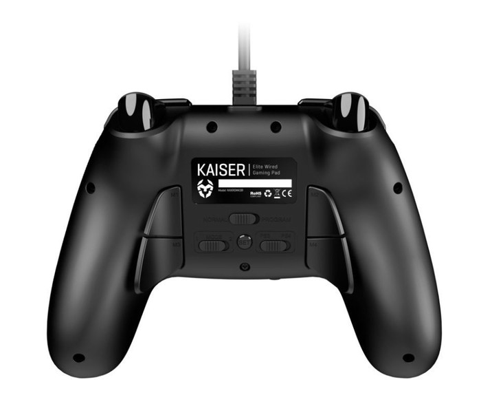 Kaiser es un mando multiplataforma de fácil personalización, posee 12 botones y 4 palancas traseras que pueden configurarse para replicar cualquiera de los otros 8 botones de manera sencilla e intuitiva y que te permite guardar hasta 2 perfiles.