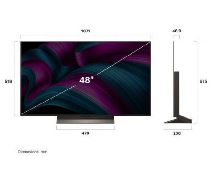 - Dimensiones sin peana: 1071 x 618 x 46,9 mm