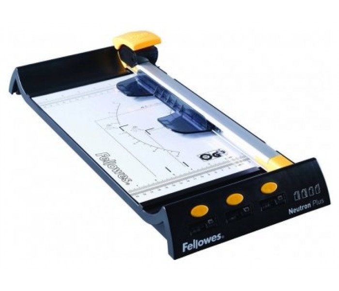 CIZALLA DE RODILLO FELLOWES NEUTRON A4 PLUS - CORTA HASTA 10 HOJAS A LA VEZ - GUIAS DE CORTE - 4 CUCHILLAS INCLUIDAS - MECANISMO SEGURIDAD SAFECUTMecanismo de seguridad SafeCut, que mantiene la cuchilla de acero en el cabezal y no emerge hasta el momento de realizar el corteDepartamento integrado en..