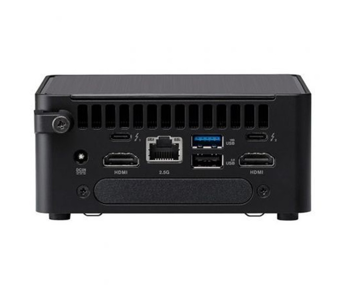 ASUS NUC 14 Pro RNUC14RVHU700002I. Tipo de chasis: UCFF, Tipo de producto: Mini PC barebone. tipos de memoria compatibles: DDR5-SDRAM, Número de ranuras de memoria: 2, Memoria interna máxima: 96 GB. Tipos de unidades de almacenamiento admitidas: SSD, Interfaz de unidad de almacenamiento: PCI Express, Serial ATA III. Ethernet LAN (RJ-45) cantidad de puertos: 1. Wi-Fi estándares: 802.11a, 802.11b, 802.11g, Wi-Fi 4 (802.11n), Wi-Fi 5 (802.11ac), Wi-Fi 6E (802.11ax), Versión de Bluetooth: 5.3. Tipo de enfriamiento: Activo. Fuente de alimentación: 120 W