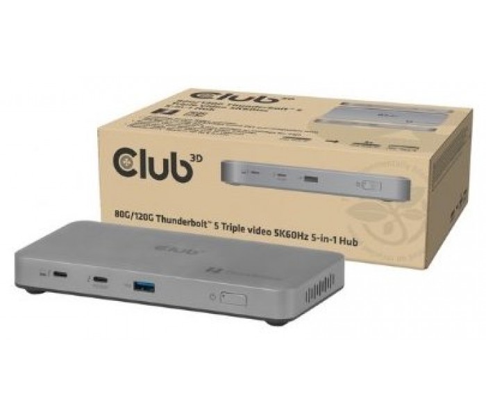 HUB 5 IN 1 USB-C CLUB3D THUNDERBOLT 5 180W 5K60HZ 80-120GPS 8K60HZ-3X5K60HZ 3XUSBC 1XUSBA