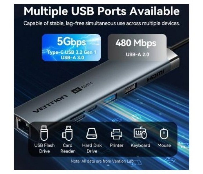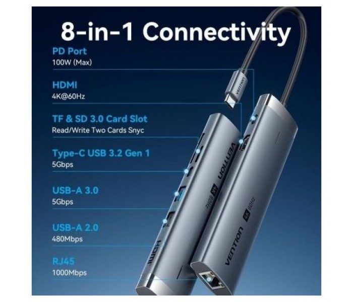 Vention Docking Station USB-C a HDMI/ USB-C 3.2Gen1/ USB3.0/ USB2.0/ RJ45/ SD/ TF/ PD TGUHB 0.15m Aluminio