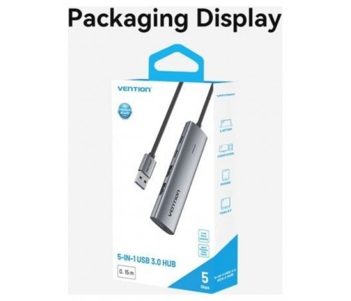 Hub USB 3.0 Vention CHNBB/ RJ45/ 3xUSB/ 1xMicroUSB PDVention Concentrador USB 3.0 5 en 1 Red cableada Gigabit para una conexión más rápida y estable Transferencia de datos estándar de 5 Gbps Admite disco duro de 8 TB con fuente de alimentación para fácil acceso Expansión de 3 puertos, sin necesidad ..