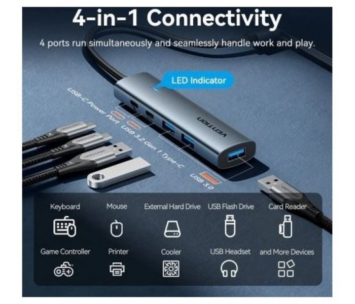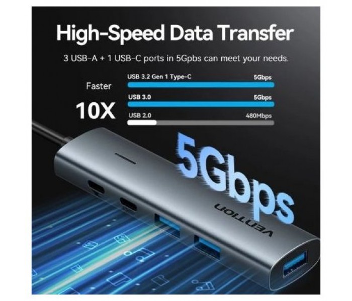 Vention HUB USB-A 3.2 a USB-C 3.2Gen1/ USB3.0x3USB-C 0.15m TGXHB Aluminio