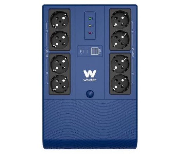 SAI Woxter Multibase 1200VA con batería de 12V/7Ah, 8 tomas Schuko y protección contra cortes de suministro. Ideal para PCs y equipos críticos.