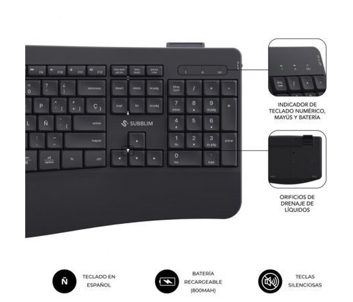 SUBBLIM Teclado Ergonómico y ratón Combo Business Slim Silencioso Inalámbrico 2.4G