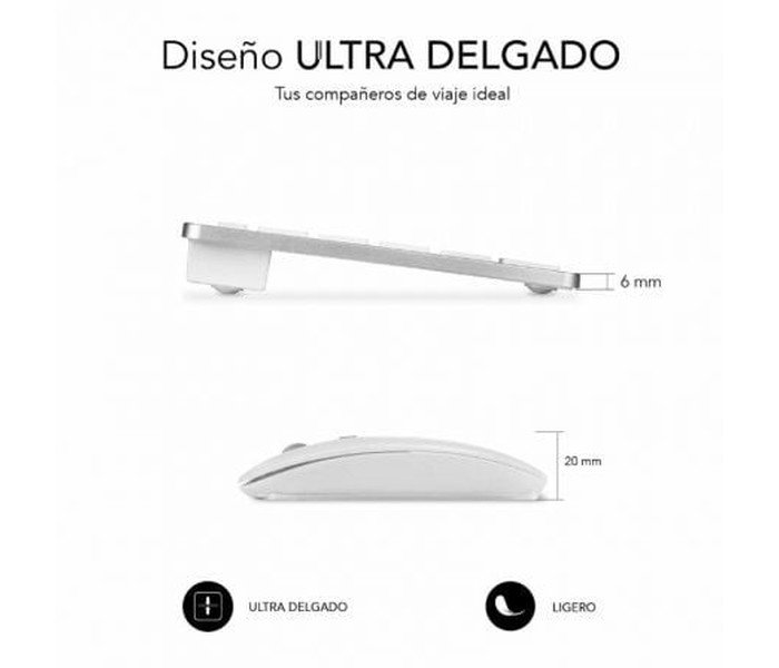 Crea un espacio minimalista, moderno y silencioso con la compacta combinación con tecnología inalámbrica Bluetooth y además por radio frecuencia 2.4G. El Combo Multidispositivo de Subblim, compuesto de un teclado y un ratón de diseño avanzado de alta precisión de hasta 1600DPI, son. perfectos para hacer las tareas con eficacia y permite una productividad constante.. El tamaño de la combinación facilita el trabajo en los espacios de escritorio más reducidos y resulta la pareja perfecta para usarlos cuando estás de viaje o en reuniones de trabajo.. . Características:. . Triple conexión. . El Combo de Subblim es ideal si deseas disfrutar de la libertad de trabajar con varios dispositivos a la vez. Su funcionalidad de emparejamiento triple le permite conectar hasta tres dispositivos al teclado, dos mediante tecnología inalámbrica Bluetooth y otro mediante radio. frecuencia 2.4G. Podrás conectar de forma simultánea el Ordenador portátil, el teléfono móvil y la Tablet cambiando entre ellos de una forma muy sencilla.. . Práctico Control. . Con doce teclas de funciones multimedia*, tendrás accesos directos a tus funciones favoritas al alcance de tu mano. Cambia fácilmente entre las funciones más utilizadas para cada sistema operativo, ya sea a tu PC con Windows, iPhone o dispositivo Android. Tendrás acceso. rápido a los controles del dispositivo para iOS y Android, como el botón de inicio, activar la función de búsqueda, tomar instantáneas, controlar tus medios o bloquear tu dispositivo. *La compatibilidad de las teclas de función varía según el sistema operativo. . Diseño ergonómico y silencioso. . El mecanismo de tijera de las teclas hace que escribir sea cómodo y muy receptivo. El ángulo del teclado proporciona soporte para la muñeca para un trabajo sin dolor durante largos períodos de tiempo. El mouse silencioso y su clic muy suave garantizan un ambiente tranquilo y sereno.. . Estilo elegante y compacto. . Las teclas son planas y elegantes, estilo Mac. Este diseño ahorra espacio en su escritorio. El mouse, con su línea elegante y acabado plano, agrega un toque de elegancia a su escritorio.. . Ratón. . El elegante ratón inalámbrico con batería de litio recargable de alta duración, tiene 3 niveles de DPI ajustables (800/1200/1600), para que pueda elegir la velocidad correcta del puntero en función de sus actividades como por ejemplo trabajo, juegos o uso en una pantalla de TV.. . Especificaciones:. . Conectividad inalámbrica multidispositivo. El Teclado Inalámbrico Subblim soporta 3 dispositivos mediante dos canales con tecnología inalámbrica Bluetooth 5.2 y uno a través de un receptor USB RF 2.4G. El ratón soporta 2 dispositivos, un canal con tecnología inalámbrica Bluetooth 5.2 y uno a través del receptor USB. El receptor USB se comparte entre el teclado y el ratón unificando ambos y ocupando solo un puerto del dispositivo.. Cambia entre los diferentes dispositivos muy fácilmente pulsando el selector de modo en el teclado y el ratón.. Es el más adecuado para el hogar, la oficina, para el uso su teléfono inteligente, ordenador portátil, iPad, Tablet Android o Windows, consolas de videojuegos o Smart TV.. Funcionamiento silencioso. Las teclas silenciosas y precisas proporcionan una escritura táctil natural con un menor ruido. Diseñado para una mayor productividad y portátil para una entrada de datos eficiente.. El ratón de alta precisión de hasta 1600DPI también tiene los botones silenciosos y batería recargable de alta duración.. Diseño del Teclado en Español y Ratón Ultra-Slim. Compatible con dispositivos Windows® 8/10/11, Android™, iOS/iPadOS 13 y MacOs