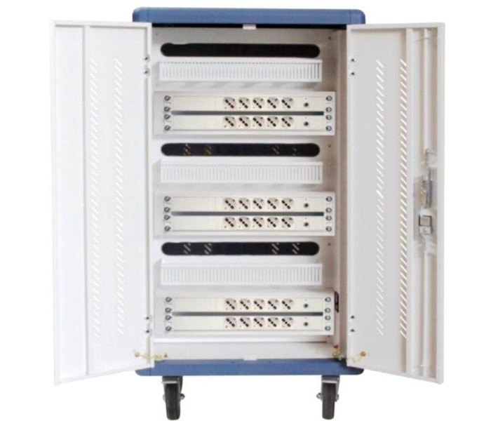 La estación de carga PHT 3530 de PHASAK es la solución ideal para entornos profesionales que requieren recargar múltiples dispositivos móviles como portátiles, tablets y smartphones de manera segura y eficiente. Su diseño robusto y altamente funcional la convierte en la opción perfecta para oficinas, laboratorios informáticos y aulas. Características Destacadas: Capacidad para 30 dispositivos: Equipado con 6 regletas Schuko, ofrece un total de 30 tomas de corriente. Fácil instalación: No requiere montaje, solo la colocación de las ruedas. Ruedas 360º: Ruedas de 5? en goma anti-rayones y silenciosas, con freno doble en las traseras para mayor estabilidad. Gestión de cables: Incluye un sistema de gestión de cables integrado para mantener todo organizado. Ventilación activa: Panel lateral con ventilación activa para evitar el sobrecalentamiento de los dispositivos. Seguridad reforzada: Cerraduras de seguridad con apertura de 180º y disyuntor magneto-térmico interno. Control externo: Interruptor principal con luz externa para un fácil control. Este armario de seguridad ha sido diseñado para garantizar la protección y carga simultánea de múltiples dispositivos, combinando seguridad, eficiencia y facilidad de uso. Su robustez y tecnología avanzada lo hacen ideal para cualquier entorno que necesite una gestión segura y eficiente de sus equipos electrónicos.