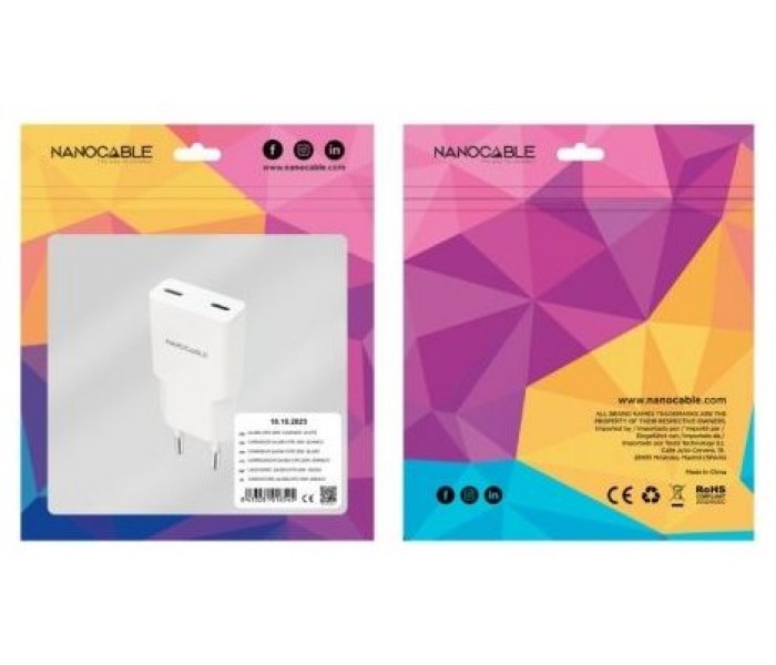- Contenido del paquete: 1 x Cargador 2xUSB-C/PD 20W, blanco