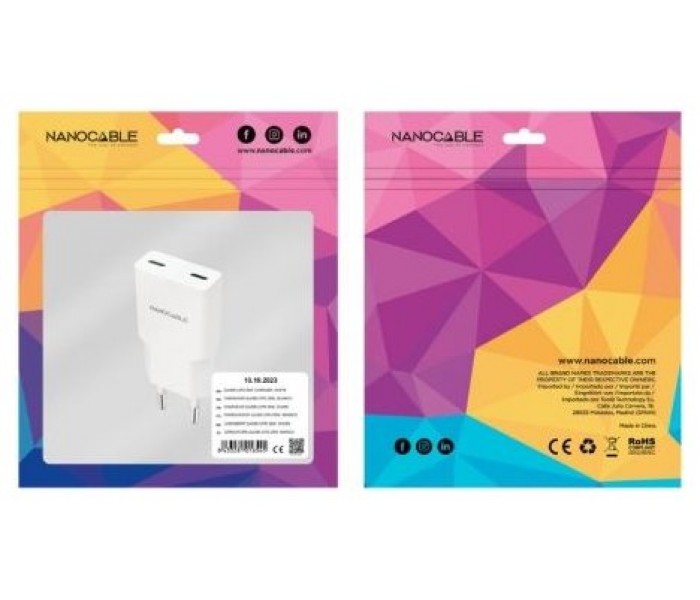 - Contenido del paquete: 1 x Cargador 2xUSB-C/PD 25W, blanco