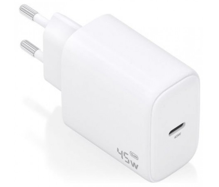 Cargador GaN USB-C 45W para cargar portátiles, móviles, cámaras y tablets etc. Diseño muy elegante, moderno y práctico.