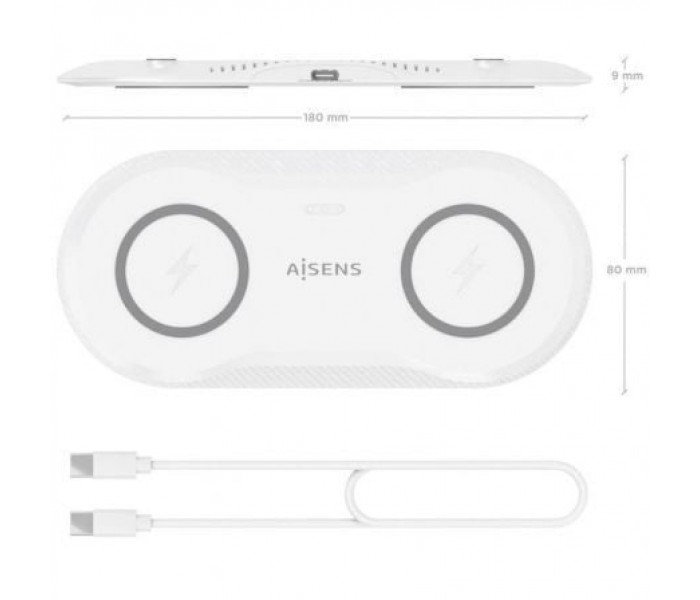 Aisens Cargador Inalámbrico USBC 15W 2 en 1 Blanco