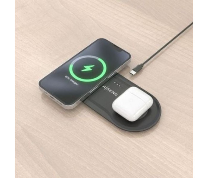 Aisens Cargador Inalámbrico USBC 15W 2 en 1 Negro