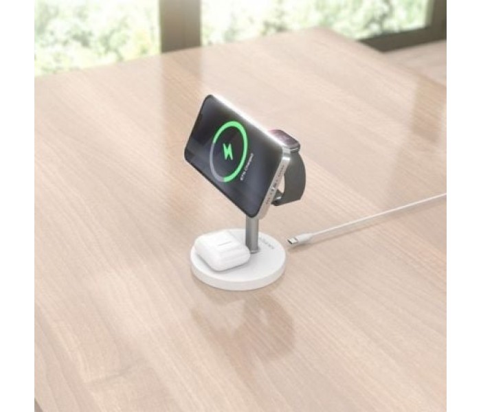 ASCH-15W3WC065-W – Cargador Inalámbrico USB-C 3 en 1 de 15W para Móvil, Apple Watch, Auriculares con Estuche de Carga, Blanco