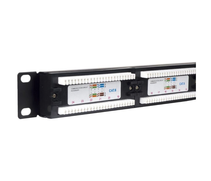 Bloque Dual de 24 Puertos: Ofrece una gran capacidad de conexión para múltiples dispositivos y terminaciones de cables.