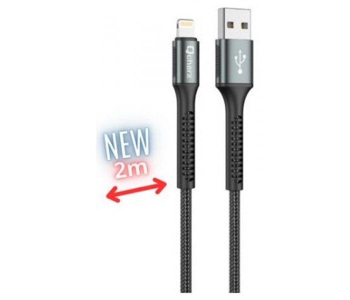 CABLE QCHARX PRAGUE LIGHTNING 2M USB A LIGHTNING 20W NEGRO CORDON REFORZADO