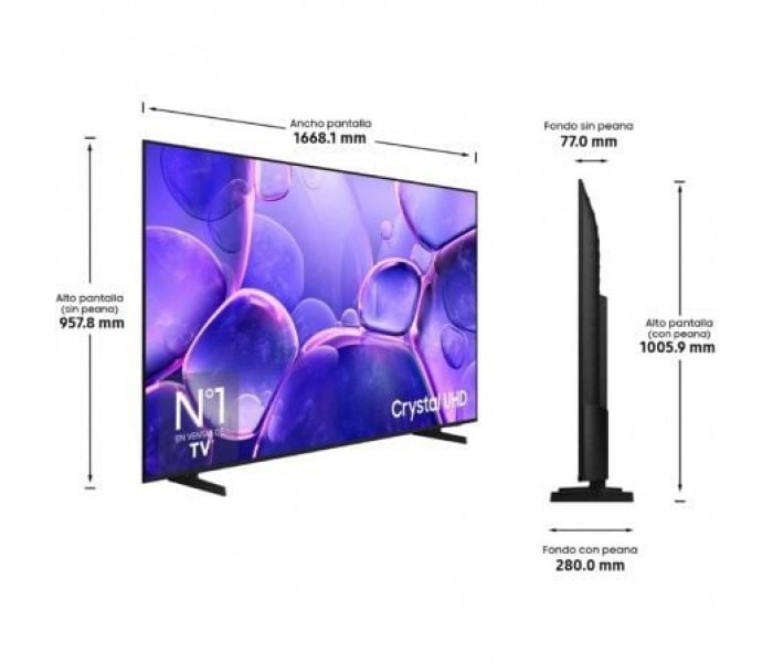 Características del TV 75" Samsung Crystal UHD U8005F 4K Smart TV 2025